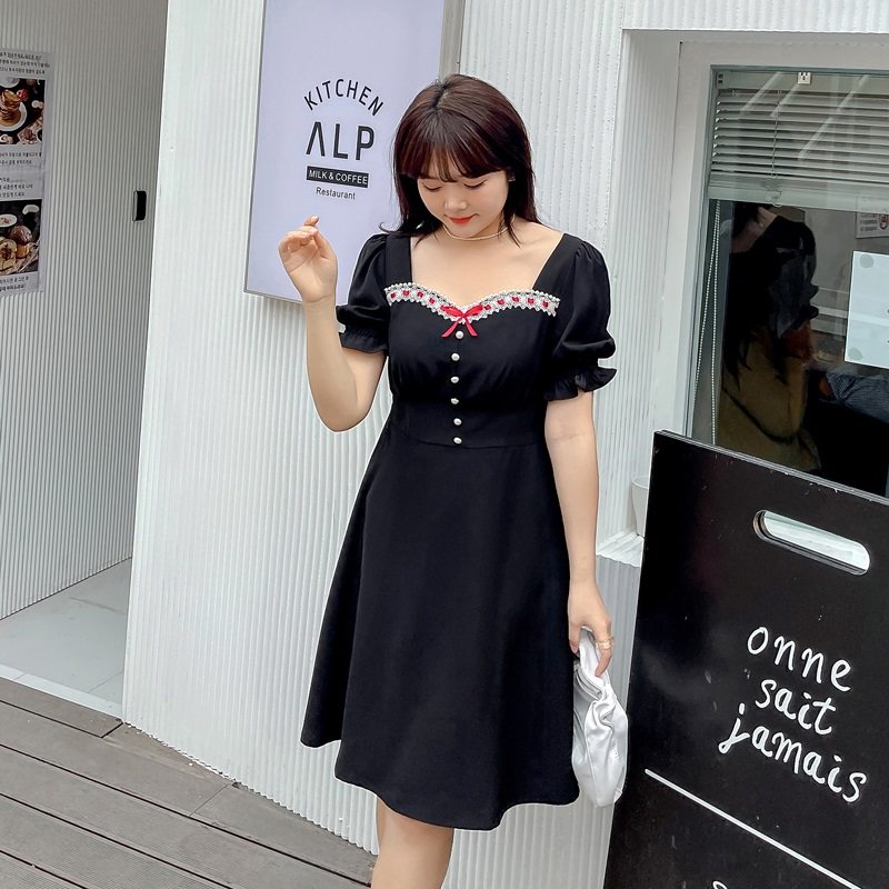微胖大码女装法式复古赫本风连衣裙大码胖mm设计感方领显瘦裙子夏热门设计联盟服务商