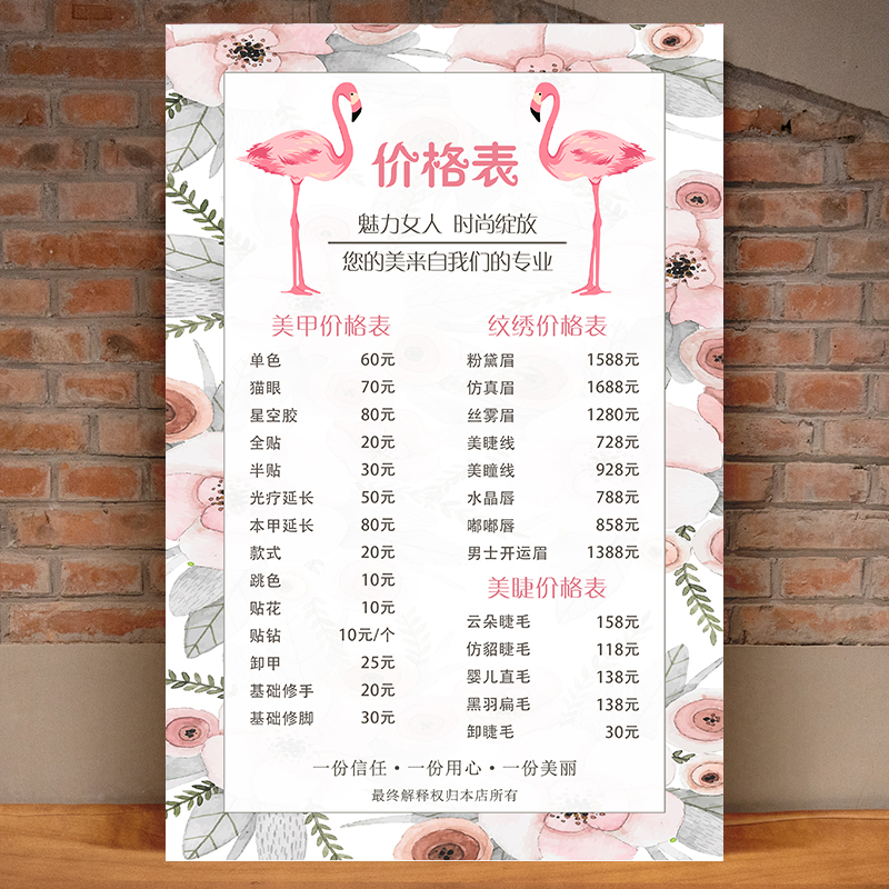 美容院美甲美睫价格表定制挂墙贴纸设计制作价目表海报广告宣传画热门设计联盟服务商