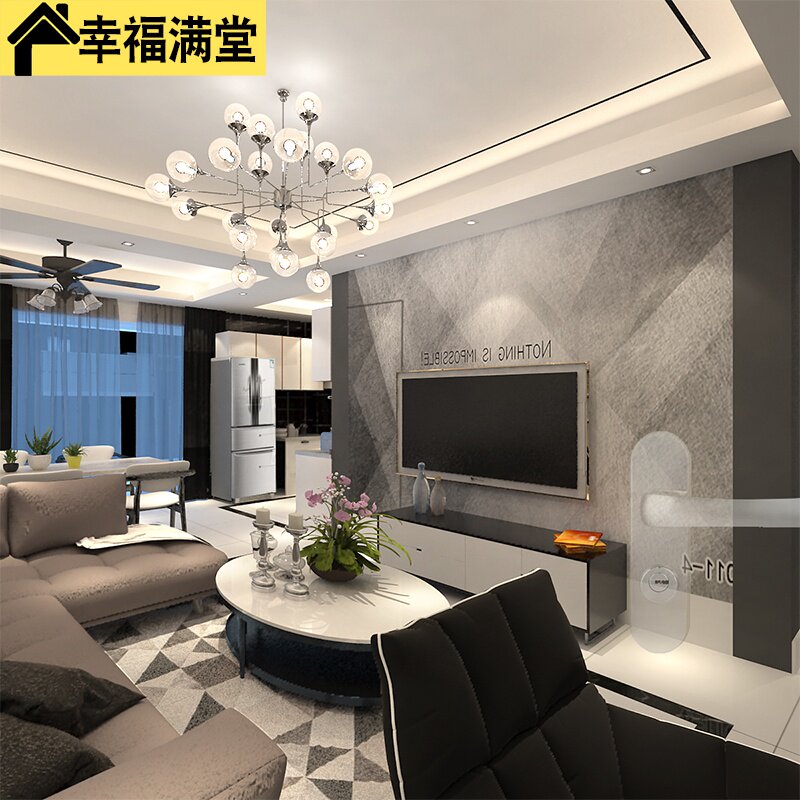 装潢背景墙室内效果图装修设计师工业卧室白灰现代简约客厅后黑家热门设计联盟服务商