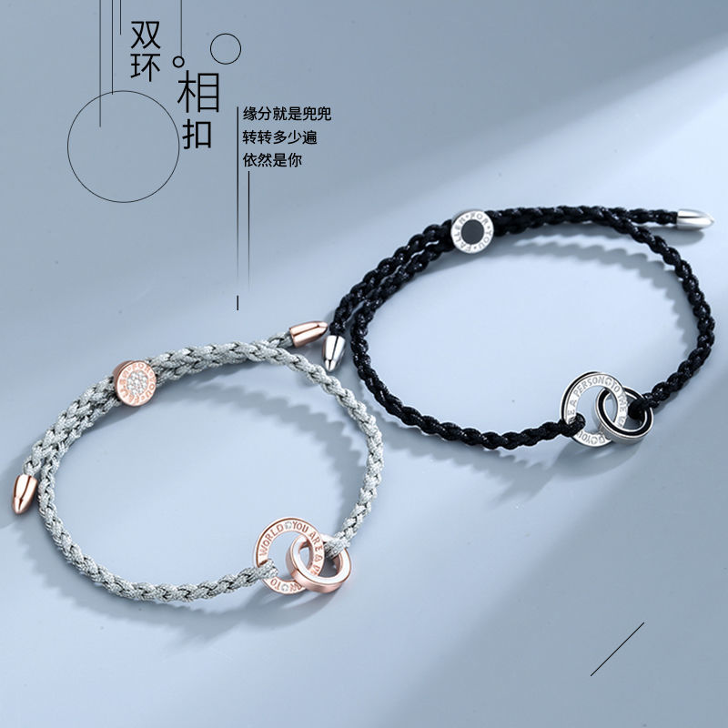 情侣手链一对纯银男女款小众设计感学生编织转运双环手绳纪念礼物热门设计联盟服务商