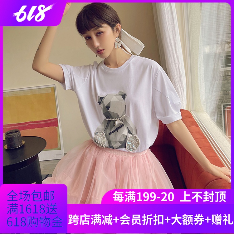 设计师品牌 istyni 休闲百搭甜美个性钉珠亮片熊T恤 2021春夏新款热门设计联盟服务商