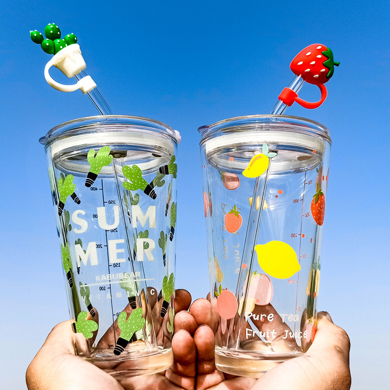 网红少女ins韩版耐热玻璃水杯带吸管杯儿童学生卡通牛奶早餐杯子热门设计联盟服务商