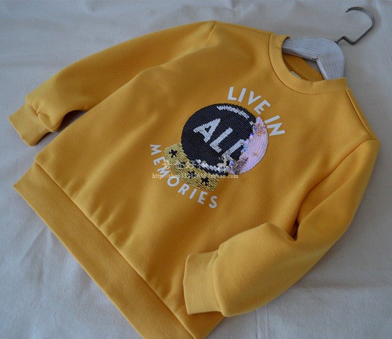 韩单 中性款儿童抓绒面料保暖卫衣绒衫可翻转亮片设计热门设计联盟服务商