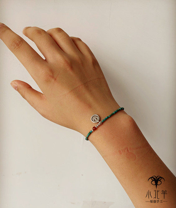 小北羊原创设计 手工手链 原矿绿松石串珠民族风 925银笑脸热门设计联盟服务商