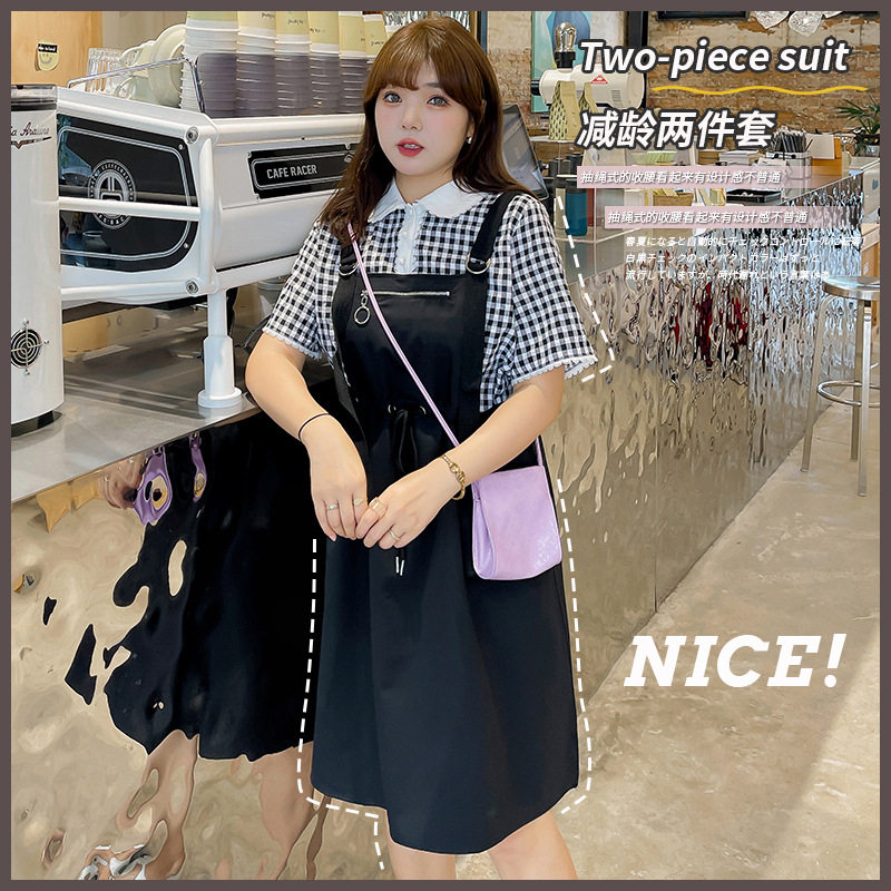 2021夏季新款大码女装200斤胖mm日系减龄工装背带裤套装显瘦时尚热门设计联盟服务商