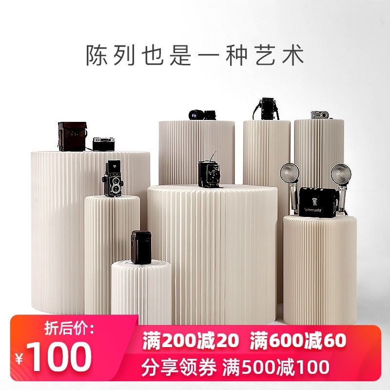 纸玲珑创意橱窗陈列架中岛展示台展会展览折叠纸圆柱货架圆形展台热门设计联盟服务商